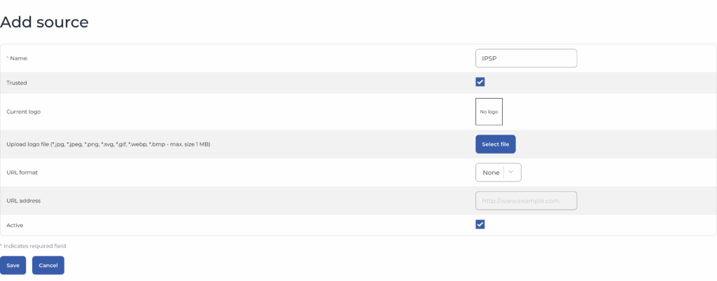The administrator will create new sources and marks the trusted ones. It is important to activate the new source.